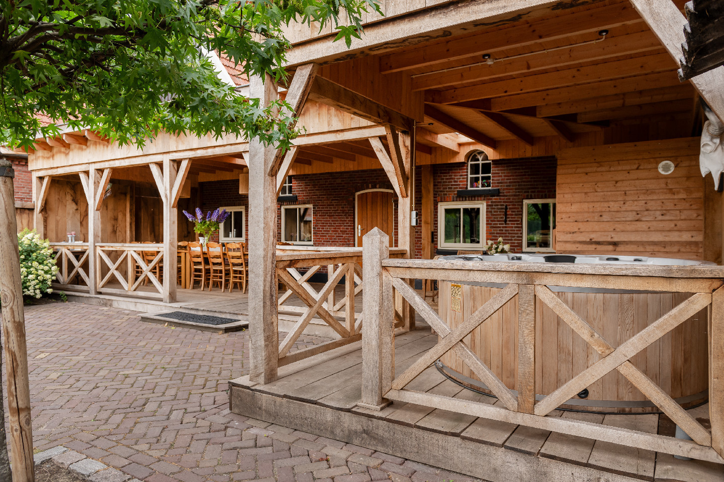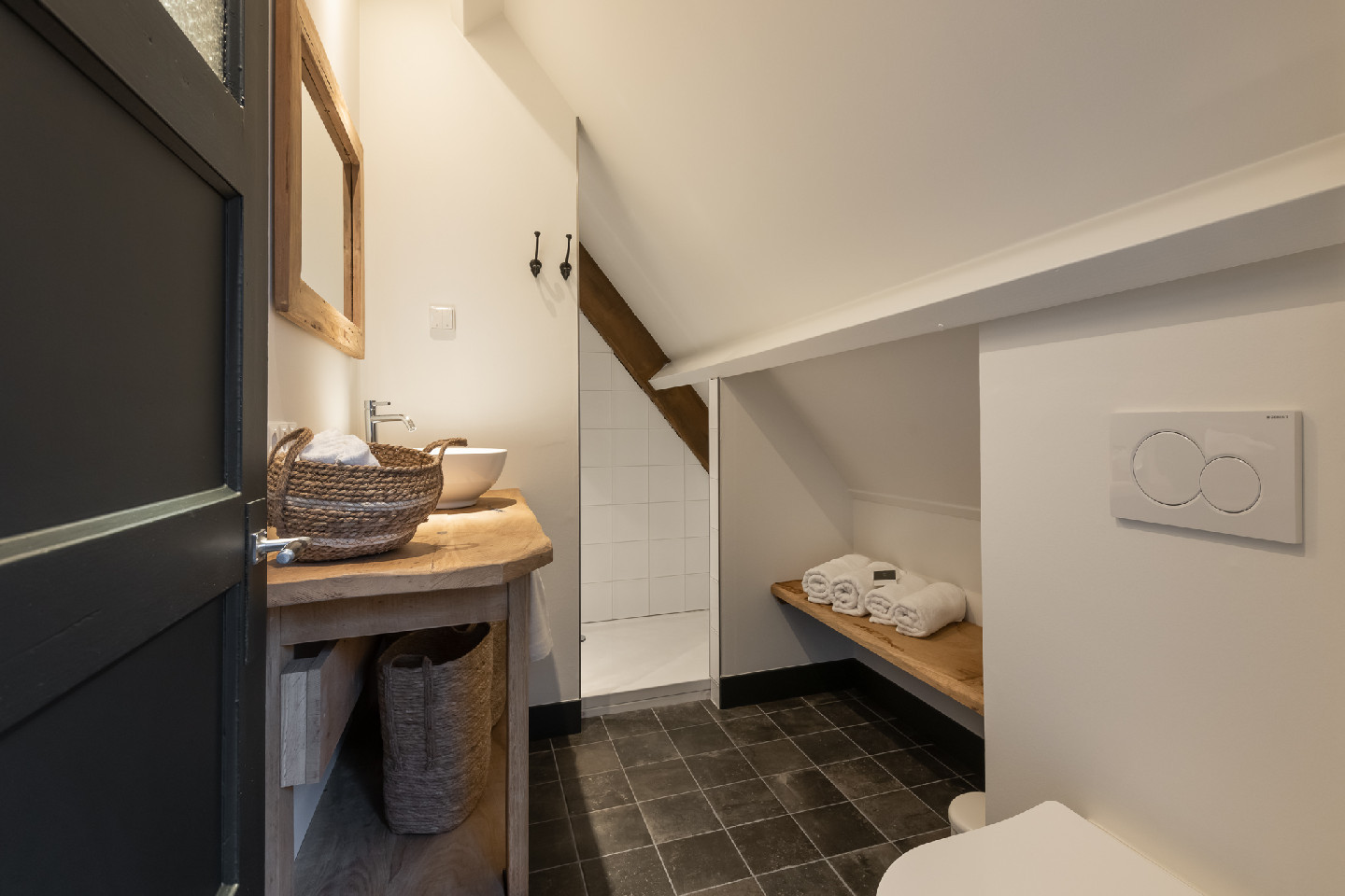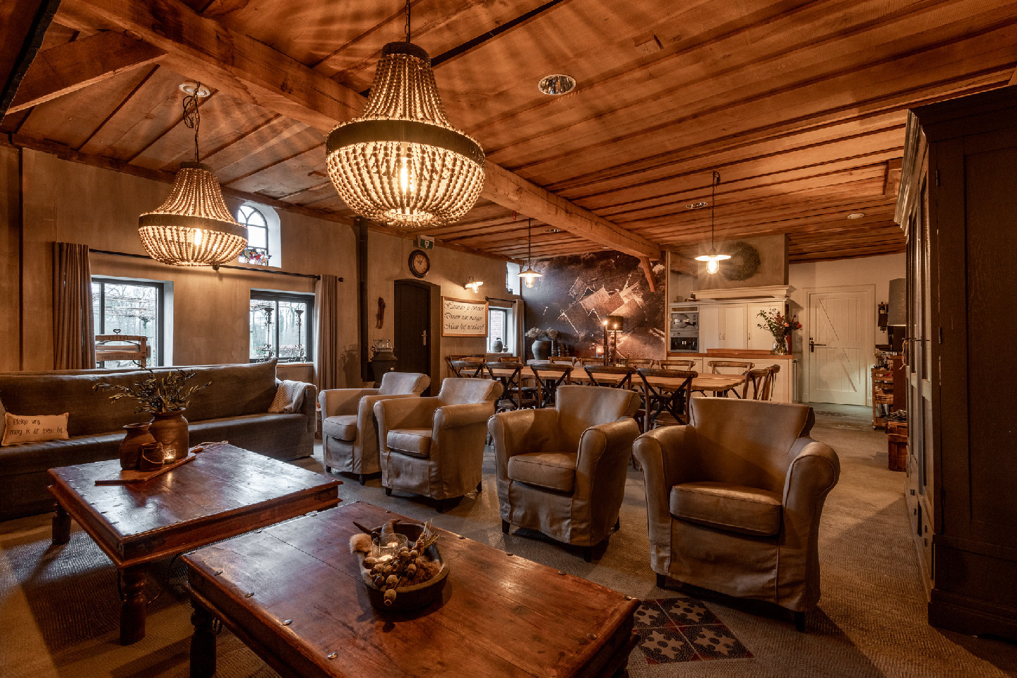 In de accommodaties is niets aan het toeval overgelaten. Het landelijke karakter komt overal terug: een robuuste houten trap, zichtbare houten dakconstructies en warme houten details. De ruime badkamers zijn voorzien van comfortabele douches, stijlvolle elementen en grote wasbakken met eikenhouten planken.