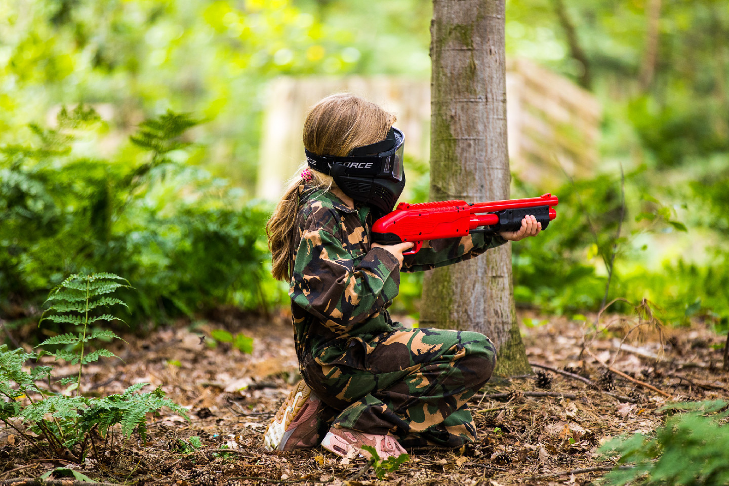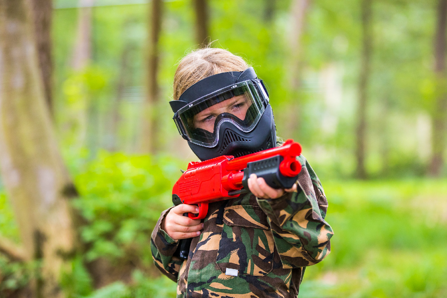 Speciaal voor kinderen is er kinderpaintball. De groep wordt verdeeld in teams en jullie strijden tegen elkaar op het speelveld. Welk team weet als eerste de vlag te veroveren? Let goed op, want de tegenstanders liggen overal op de loer!